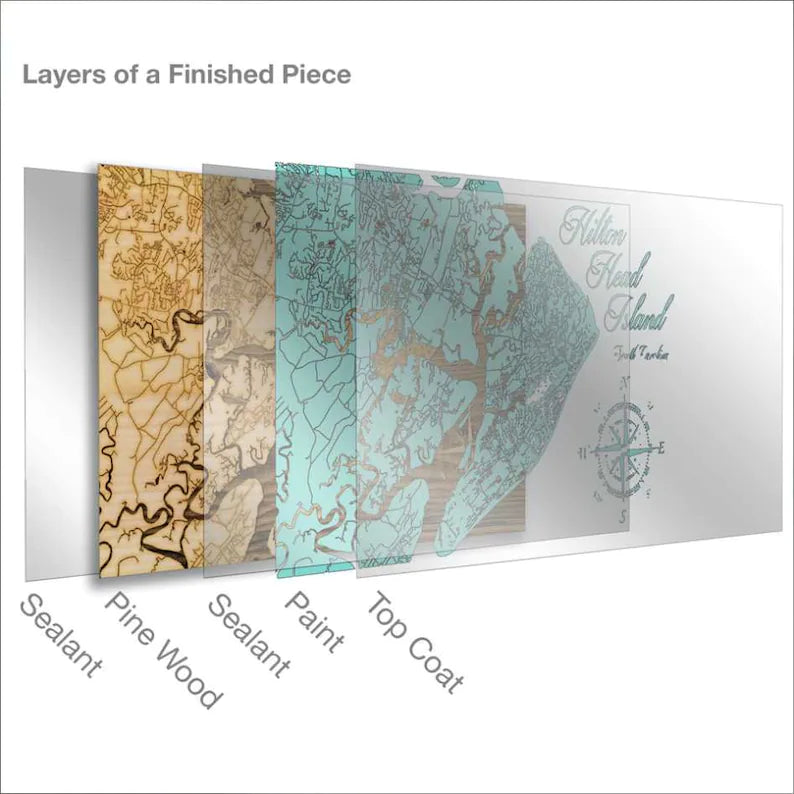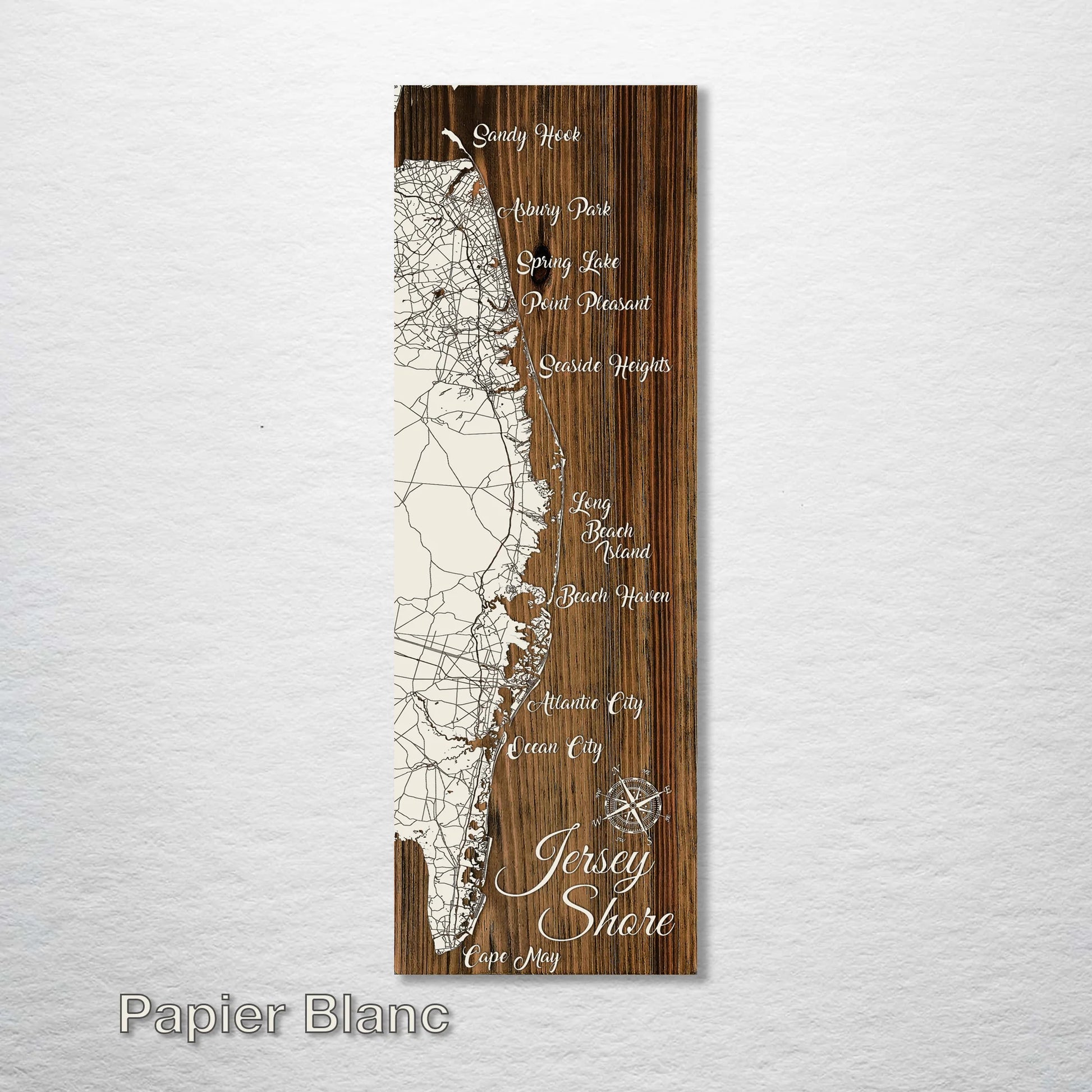 Beautifully carved pine wood map of The Jersey Shore - 11" x 35"